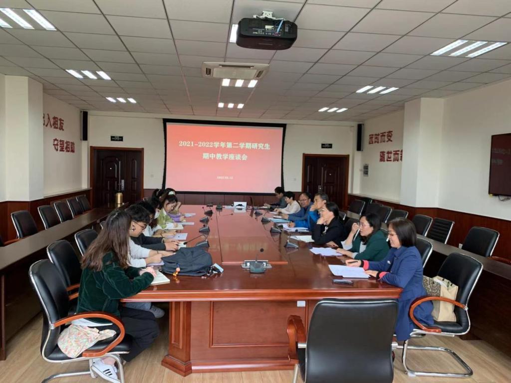5月13日下午,350vip浦京集团官网2021-2022学年第二学期研究生期中教学检查师生座谈会在J9-223会议室召开。校研究生督导李光禄教授出席会议,各教研部教师代表及学生代表参加会议,座谈会由副院长邵勇主持。